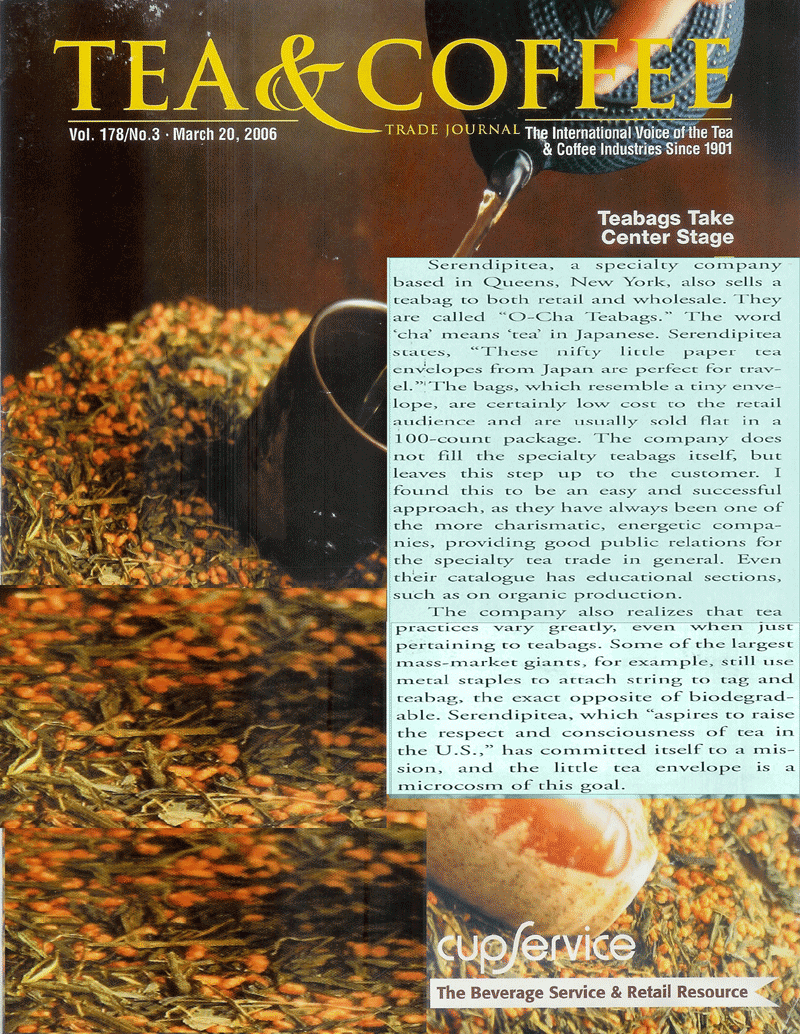 SerendipiTea is an online tea purveyor with an extensive inventory—175 loose-leaf teas and herbals gathered from 14 different growing regions around the globe. There are Fair Trade and organic teas, standard and exotic teas—something old and something new for everyone.