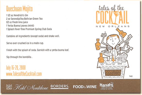 SerendipiTea was thrilled to be invited to participate in the 2008 Tales of the Cocktail. “A British Invasion of the American Cocktail Hour” introduced Tea (from SerendipiTea) as an ingredient in two new creations by Mixologist Extraordinaire “Miss Charlotte Voisey”. Tea was never more fun than in the Crescent City at Tales of the Cocktail, an annual event billed as New Orlean’s “Most Spirited Event of the Summer”. For more information about the event, organization & how to reserve tickets for next year visit the site www.talesofthecocktail. We’ll see you there ~ Let’s toast to Tea!